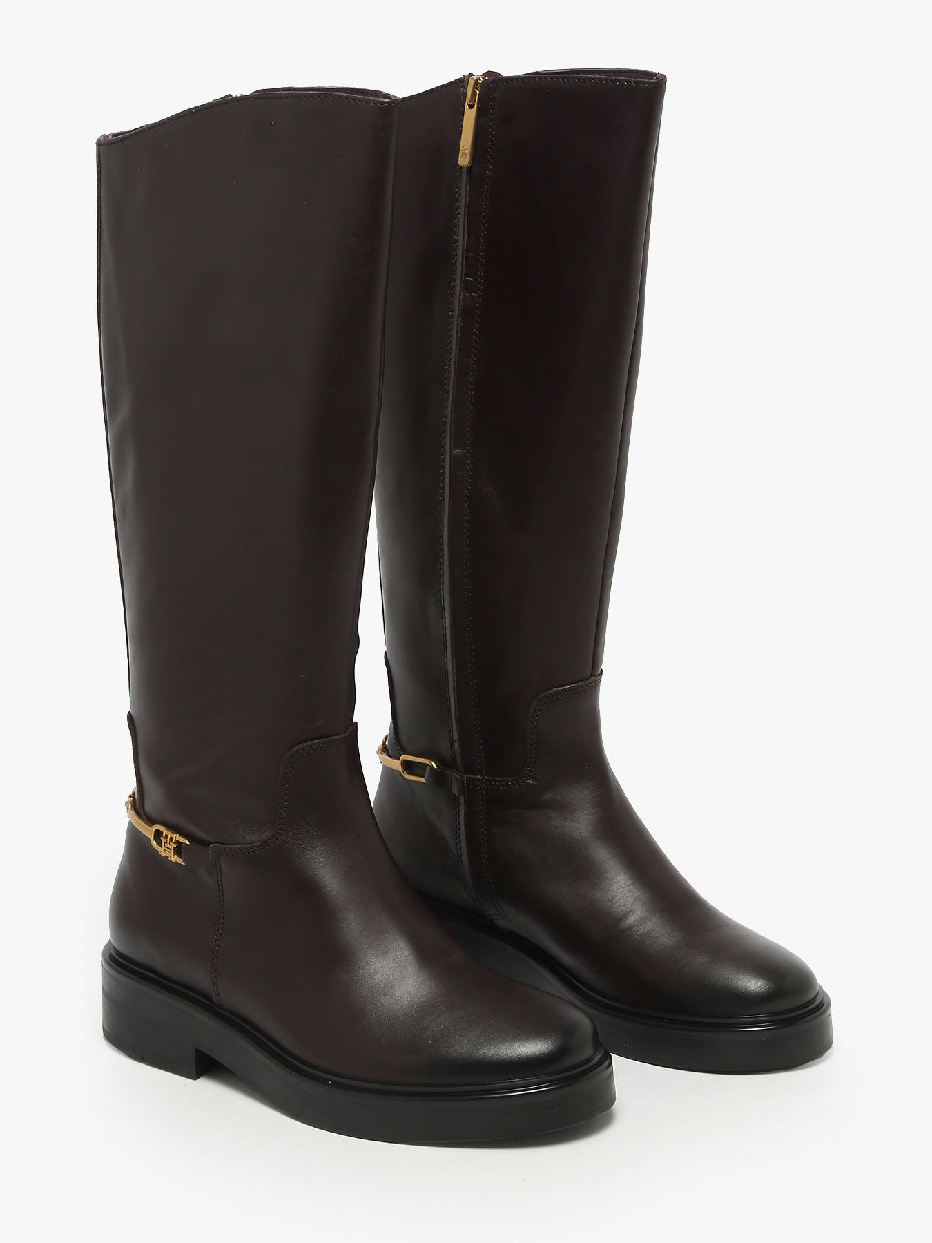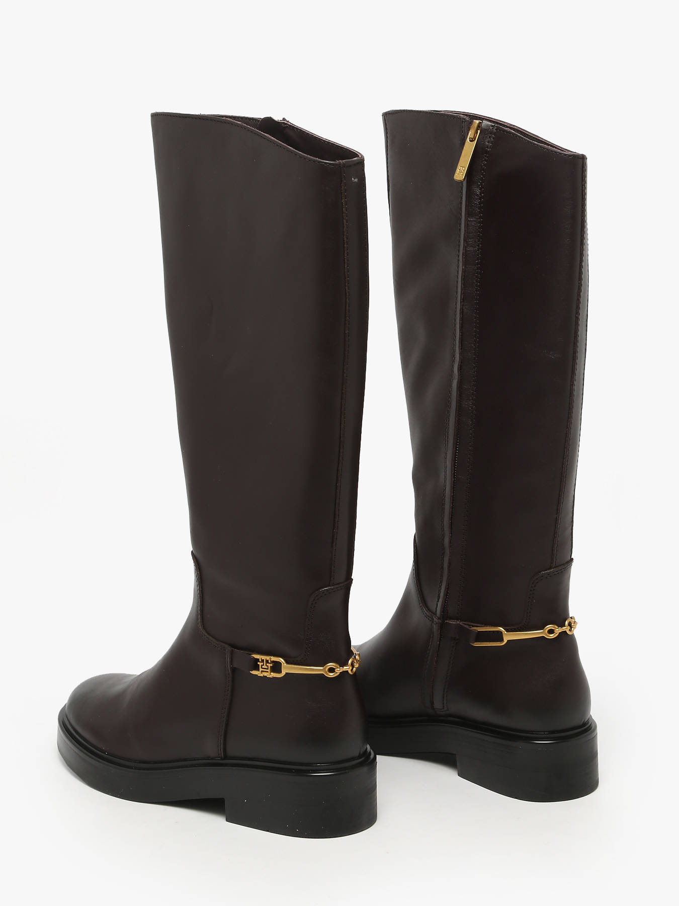 The TH HORSEBIT RIDING LONG BOOT by TOMMY HILFIGER embodies everyday elegance and refinement. Crafted from high-quality smooth leather, they offer a sophisticated and modern look, perfect for complementing both dressy and casual-chic outfits. Their leather and textile lining ensures comfort and breathability, while the leather insole provides softness and support with every step. The side zipper makes them easy to slip on while ensuring a perfect fit. Inspired by equestrian style, these tall boots stand out with their elegant and versatile design, enhancing jeans, skirts, or dresses. True to TOMMY HILFIGER’s quality standards, they combine sophistication, lasting comfort, and timeless style, making them both chic and practical.