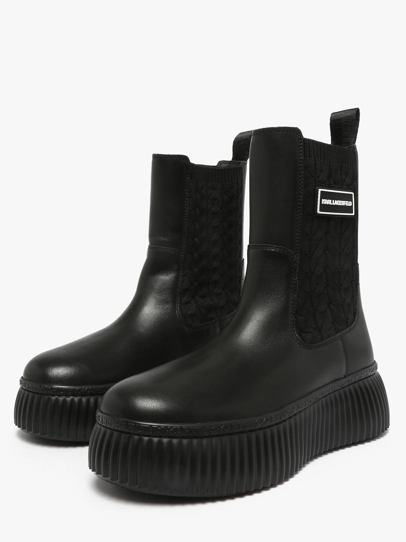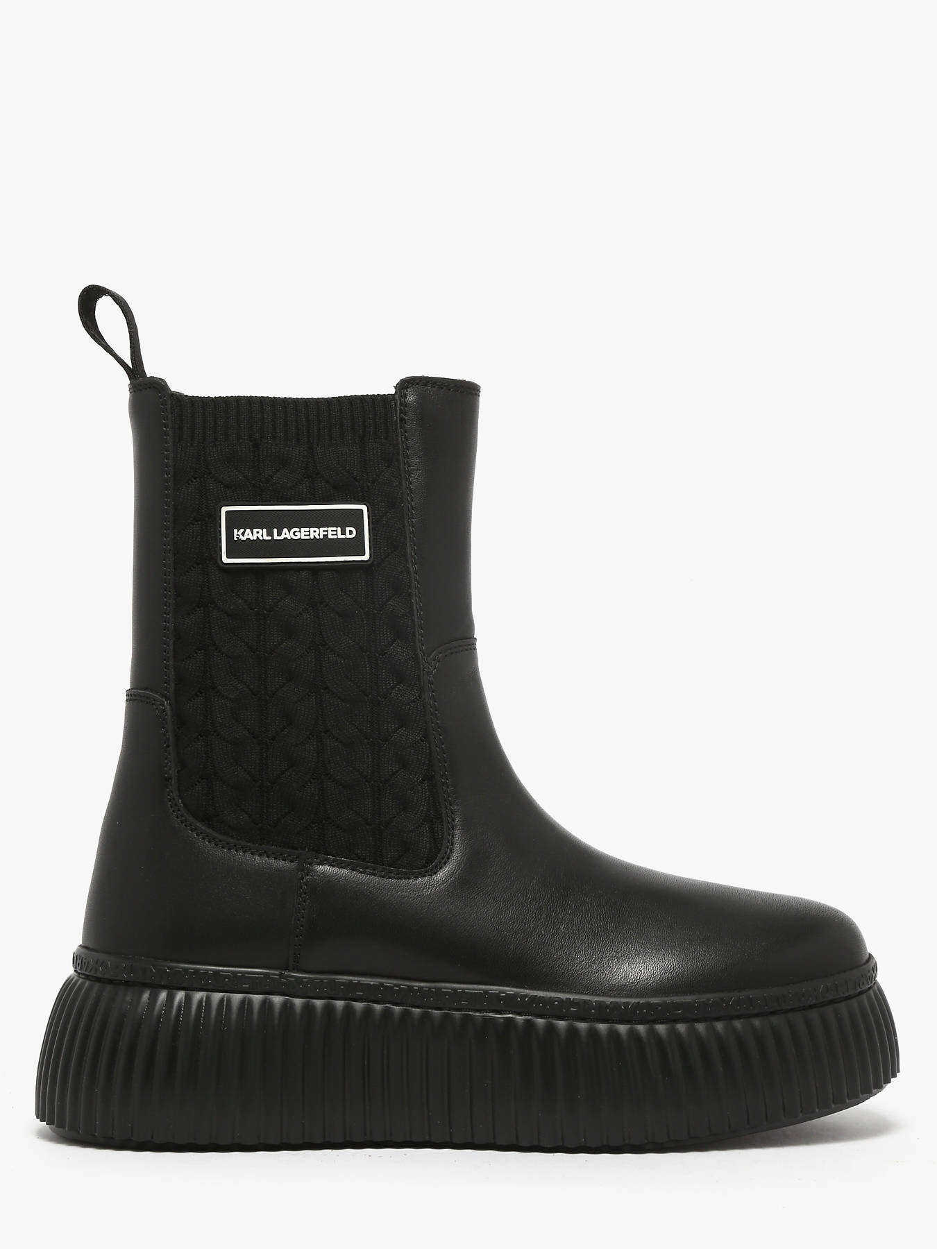 The KREEPER LO Kable Knit Boots from KARL LAGERFELD combine modernity with bold style. Their smooth-finish leather and textile upper offers elegance and durability, while the synthetic lining provides comfort and breathability throughout the day. Easy to slip on thanks to the side elastic panels, they ensure optimal support and a practical fit. The leather insole guarantees softness and lasting comfort with every step. Versatile and trendy, the KARL LAGERFELD KREEPER LO Kable Knit Boots are perfect for completing your urban outfits with a touch of character and sophistication.