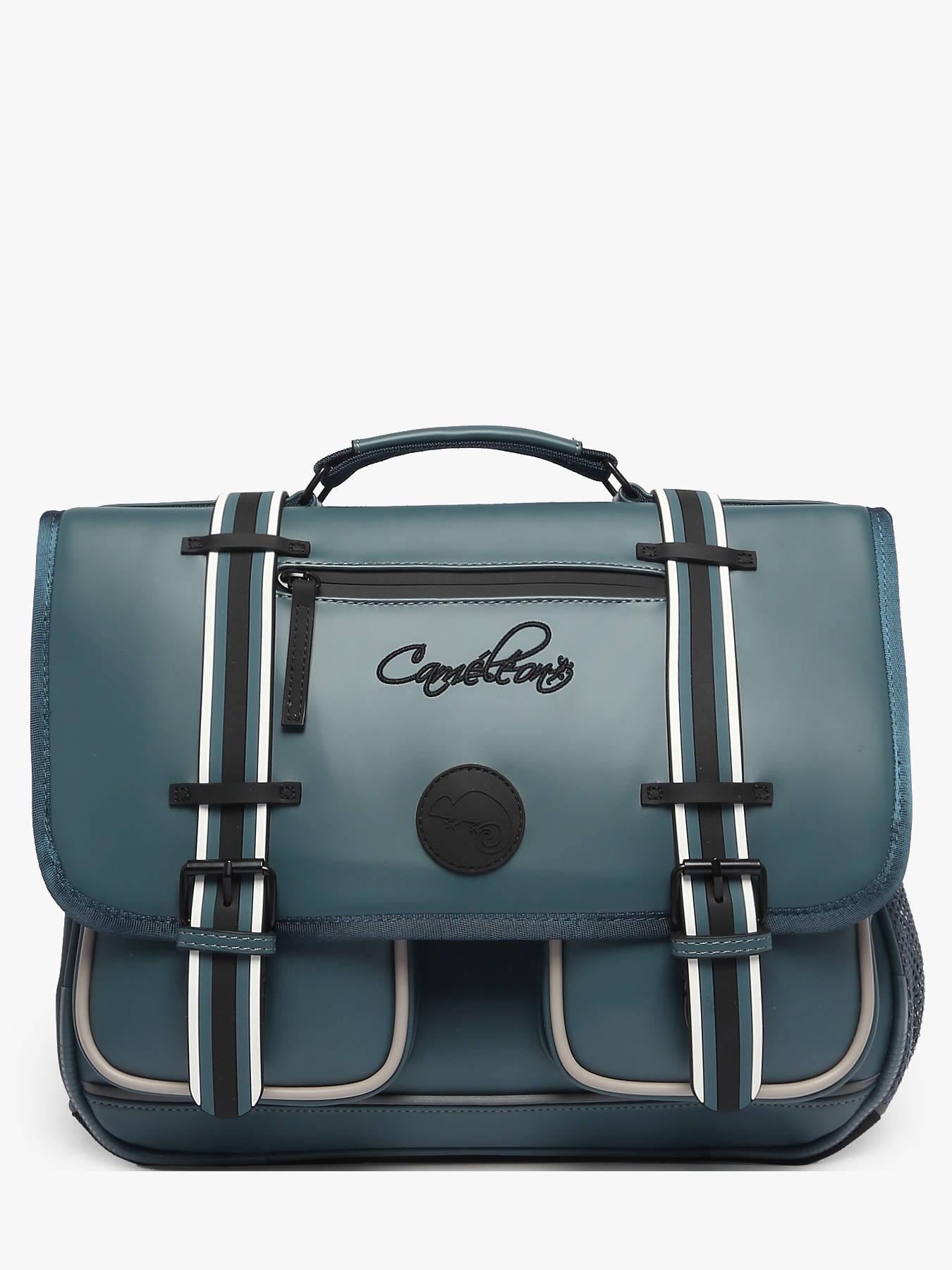 38 cm - 18 litres - 1.07 kg ~ Cartable primaire 38 cm signé Caméléon de la ligne Vintage North. Ce cartable enfant convient parfaitement pour le CP, le CE1 et le CE2. On adore les belles touches vintage avec ses finitions et sa poche à fermeture zippée sur le rabat ! Il se divise en deux grands compartiments pour l'ensemble des affaires d'école. Fonctionnel, il dispose d'une poche intérieure zippée, d'un emplacement spécial règle ainsi que de deux poches à fermeture éclair sur le devant du cartable. Petit plus, ce cartable dispose d'une étiquette nom et d'un emplacement pour la gourde sur le côté. Ergonomique, la poignée et le fond du cartable sont renforcés. Très confortable, le dos et les bretelles sont rembourrés. Ce cartable est imperméabilisé. Côté sécurité, des bandes réfléchissantes sont disposées autour du cartable enfant. Petit plus, une règle est offerte !