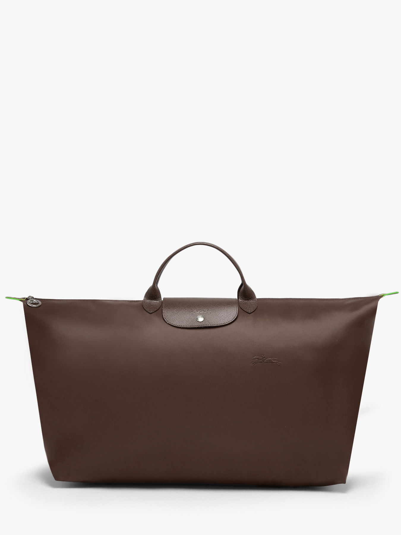 Discover the XL version of the Le Pliage Green travel bag by Longchamp. This travel bag is part of an environmentally friendly approach by the famous French brand. It is made of recycled materials. To accompany you for a weekend, this travel bag will be perfect. It offers a large storage space and has a small single pocket inside. This means you can take a lot of stuff with you and store smaller items. The Le Pliage Green travel bag from Longchamp closes with a zip. You can carry it by hand thanks to the two small handles.