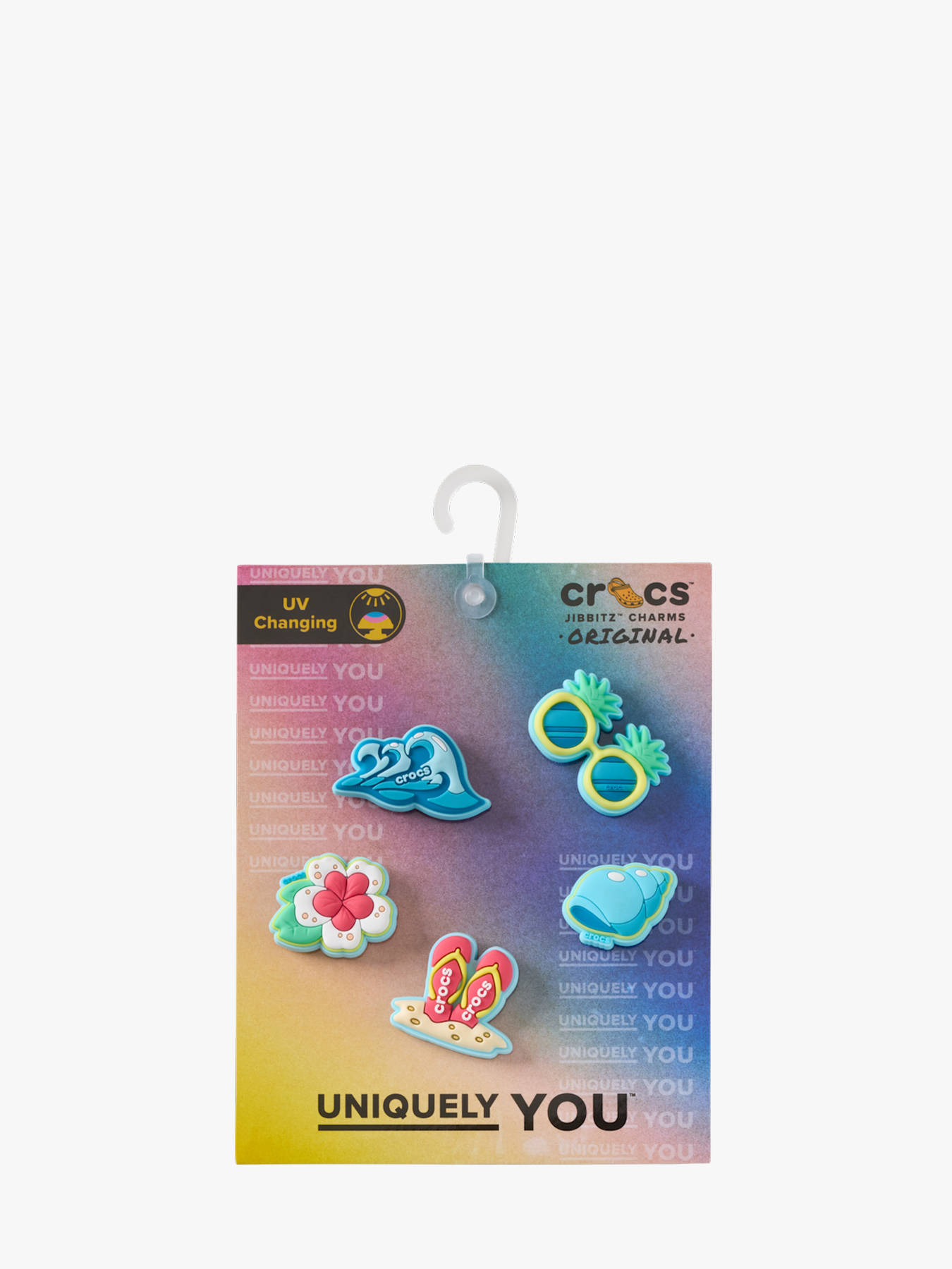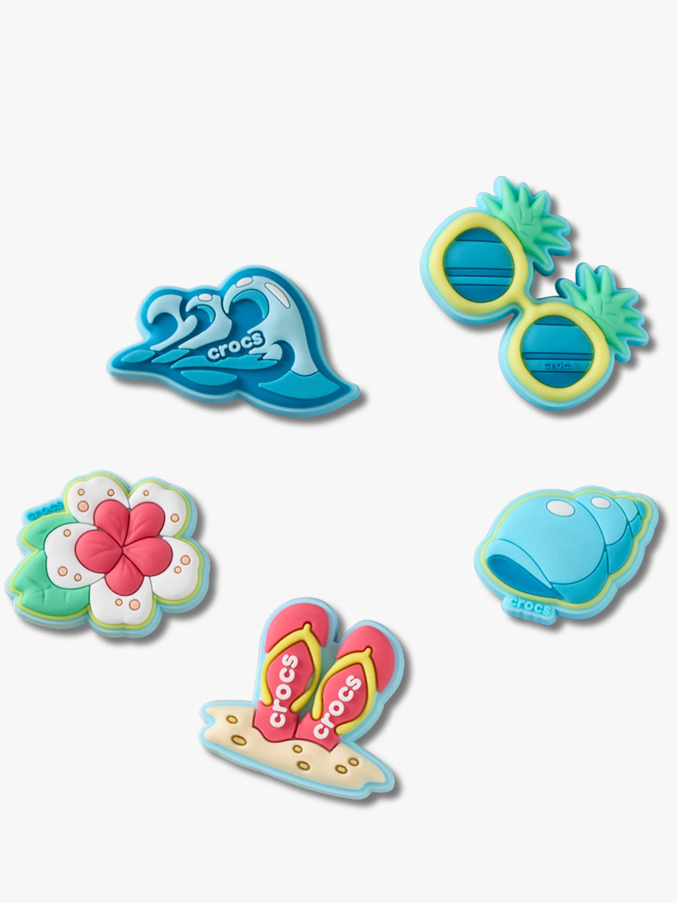 Add a playful and personalized touch to your footwear with the Beach Time 5 Pack by CROCS. Made from durable synthetic material, these decorations are specifically designed to fit easily into clogs and sandals, allowing you to create a unique style in seconds. Inspired by a summer theme, this set of five “beach time” charms evokes holidays, the sea, and sunshine, bringing a fun and trendy vibe to your look. Easy to insert and remove, they offer complete freedom to customize your shoes according to your mood or outfit. With their high-quality finish and long-lasting design, they are perfect for everyday use. Suitable for both kids and adults, this CROCS pack is the perfect accessory to turn your shoes into original, eye-catching statement pieces.