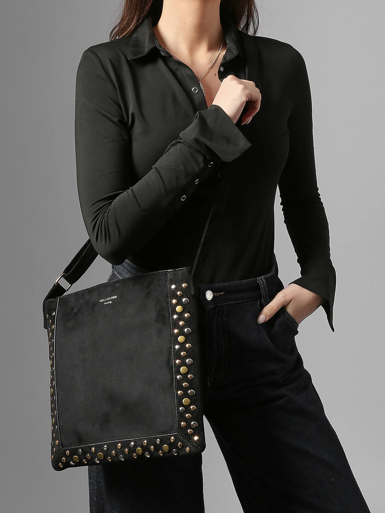The VELVET STUDS MINIPRIX crossbody bag, made from durable coated canvas, combines modern style and practicality for everyday use. Its exterior features a back pocket, perfect for quick access to your essentials, while the zip closure securely protects the main compartment. The adjustable strap ensures comfortable crossbody wear, adapting to all body types and providing great freedom of movement. Inside, a single compartment is complemented by a zip pocket and a slip pocket, allowing easy organization of your personal belongings. Compact and functional, this bag with a contemporary design adds a trendy touch to your outfits, whether for urban commutes, outings, or daily activities. A versatile accessory that blends style, lightness, and efficiency.
